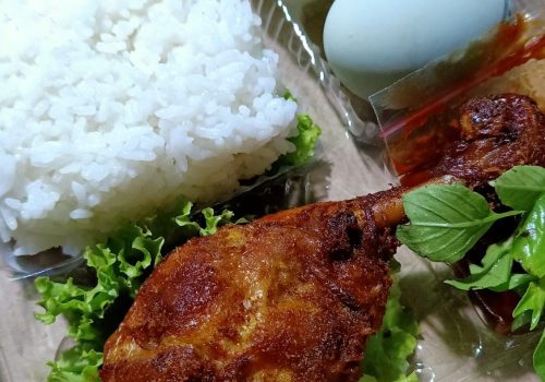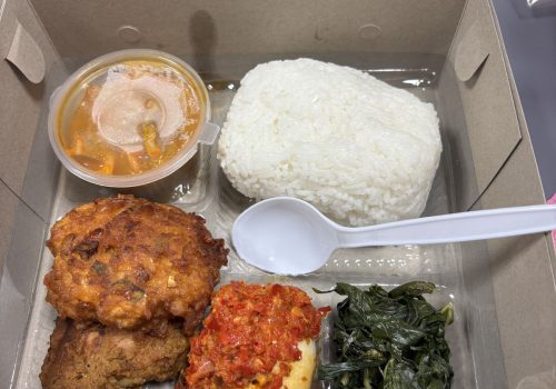1 Paket makan Halal bergizi lengkap + Air mineral botol.