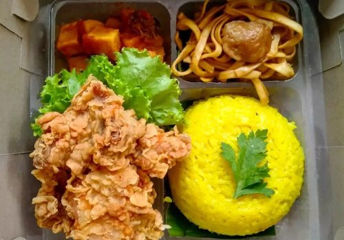 3 Paket makan Halal bergizi lengkap + Air mineral botol.